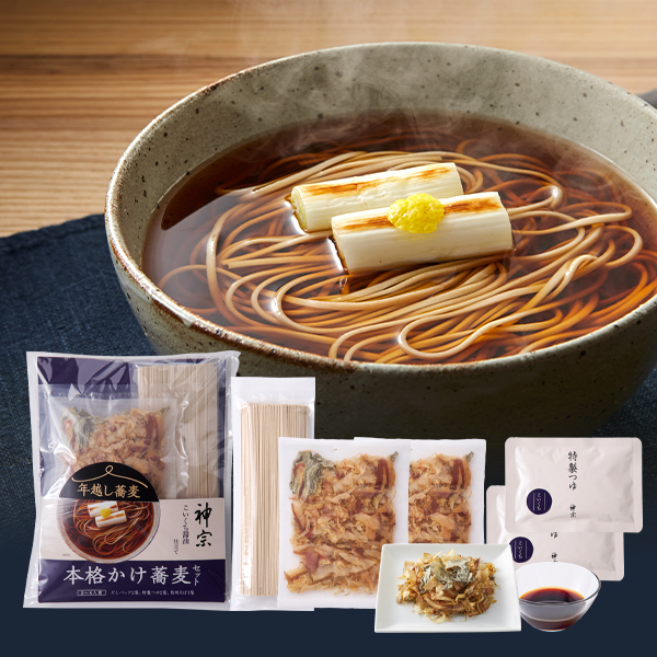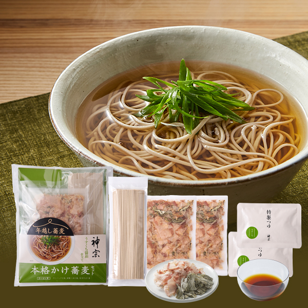 2025.11.18神宗独自の花削りのだしパックと特製つゆで、手軽に作れる本格かけ蕎麦
