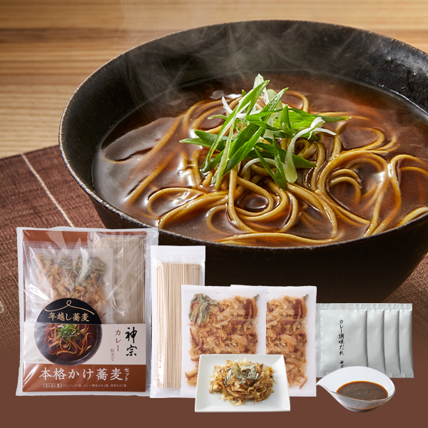 半分の蕎麦とだしパック・カレー調味だれで1~2人前として調理しお楽しみ頂けます。