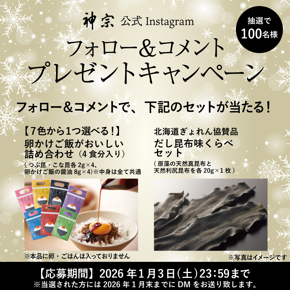 日ごろの感謝の気持ちを込めまして、神宗公式Instagramアカウントにて「フォロー&コメント プレゼントキャンペーン!」を開催いたします。