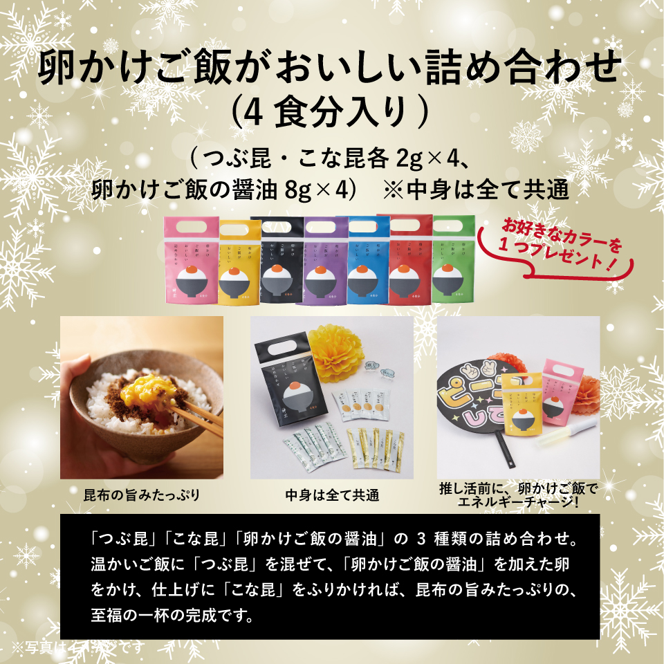 ① 神宗「卵かけご飯がおいしい詰め合わせ(4食分入り)」×1つ