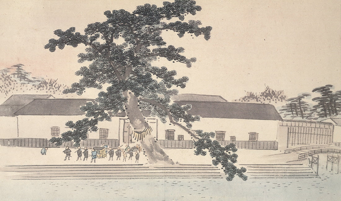 こちらの絵は慶応3年(1867年)画家 眉山 玉震(びざん ぎょくしん)によって描かれた「大坂中之島久留米藩蔵屋敷絵図」の一部で、絵図は神宗が家宝として永く秘蔵していたものです。